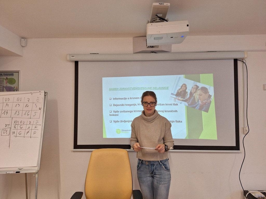Po uvodnem predavanju Blaženke Kranjec, mag. dietetike o krvnem tlaku smo sodelovali pri sestavi dnevnih jedilnikov zdrave prehrane. Sledilo je merjenje krvnega tlaka in individualna analiza telesne sestave s predstavitvijo rezultatov. Vsi prisotni - bilo nas je devet - smo bili veseli, da smo tako koristno preživeli sicer mrzlo zimsko dopoldne.